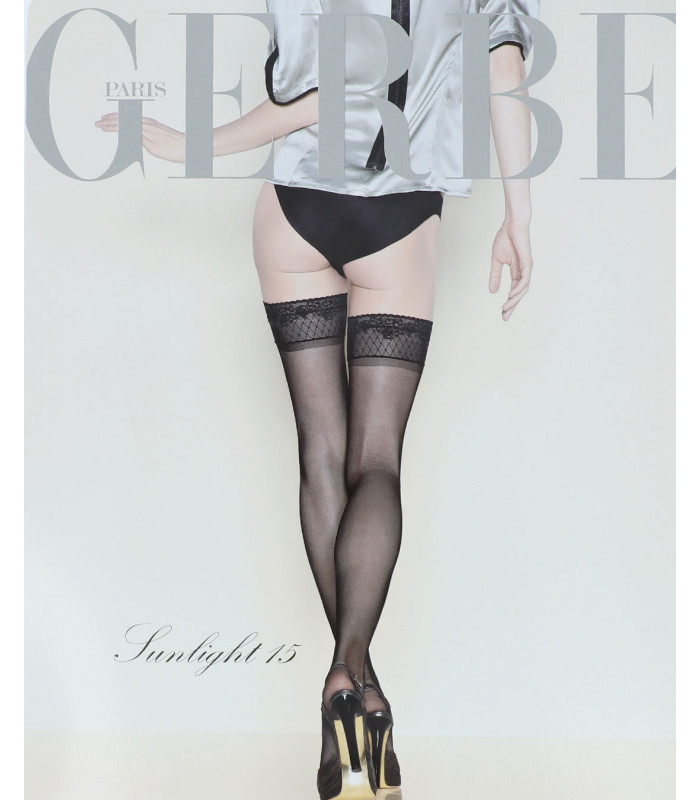 Bas jarretière Sunlight 15 deniers de la maison Gerbe; un aspect délicatement irisé et un dosage pertinent.